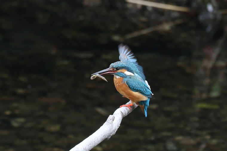 何か咥えて枝に止まりましたが、よく見たら獲物は、ちっちゃ!