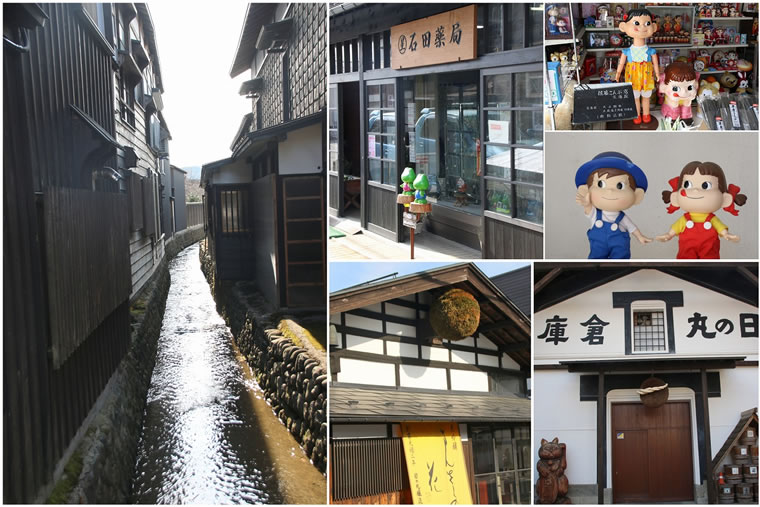 薬屋さんの店先のケロちゃん、コロちゃん、昆布屋さんのご主人が収集していたペコちゃんです!