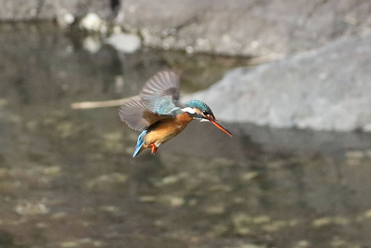 枝に止まっていたカワセミが空中に飛び出し、ホバリングしました。