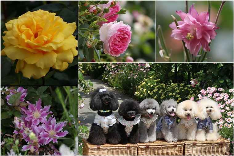 愛犬マダムたちが、バラを背景に愛犬撮影していました。その可愛らしさに、ついついカメラを向けてシャッターを押してしまいました。