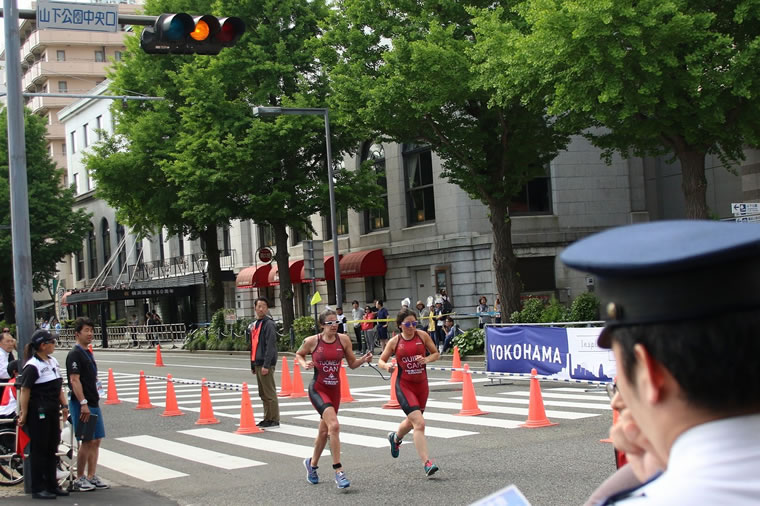 山下公園近くのみなとみらい線“日本大通り”駅に7:30 頃に到着。しばらく歩くと、交通規制された道路を、ランナーが走り過ぎていきました。