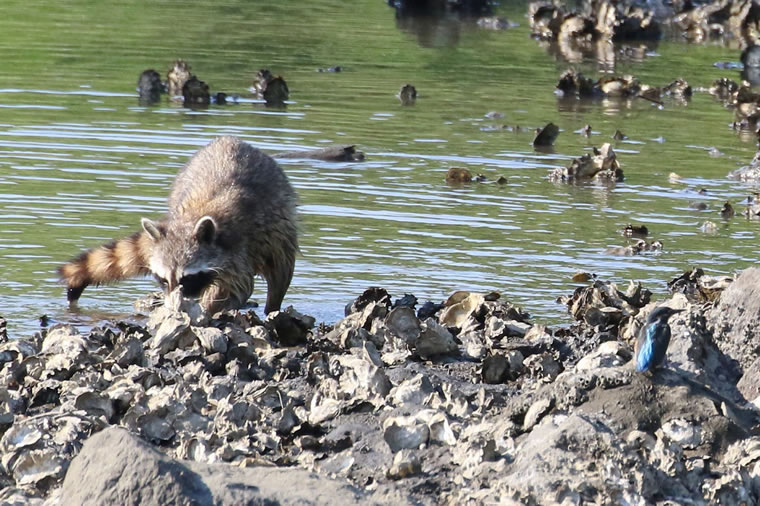 すぐ近くまでアライグマがきても、まったく動ぜず!