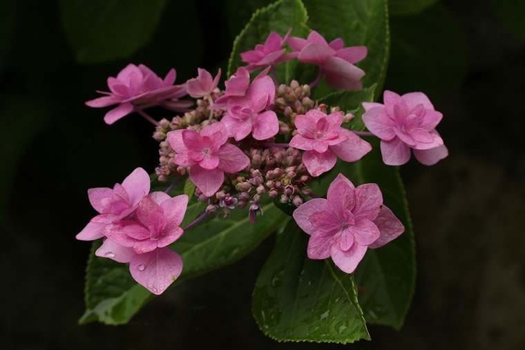 アジサイは100種以上の種類や品種があり、萼(ガク)が花の周囲を縁取るように並んだ「ガク咲き」、萼が球形になった「手まり咲き」、幾重にも萼が並んだ「八重咲き」など、見た目も様々です。