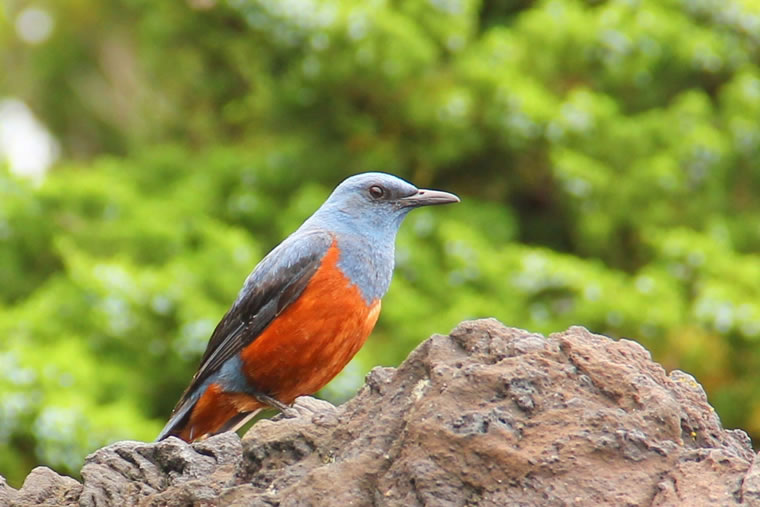 オスは、メスに比べて鮮やかなで、頭から胸、背、腰までが青藍色、腹は赤褐色です。