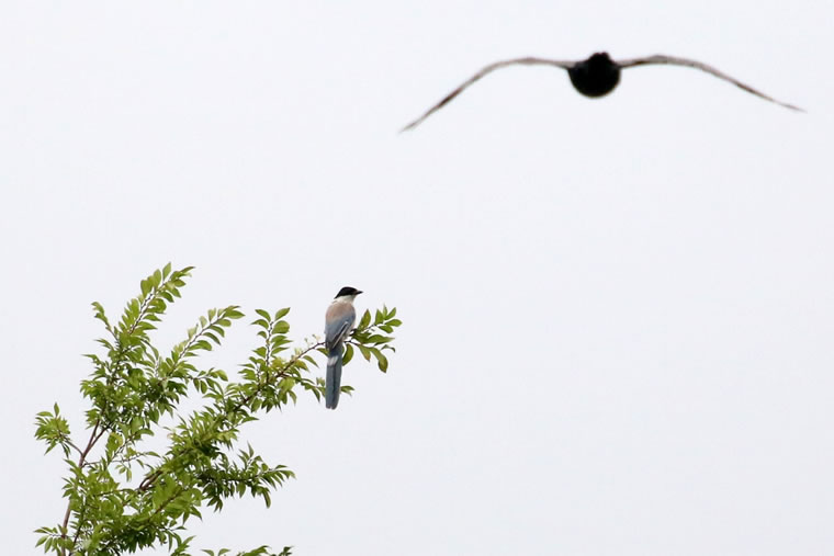 オナガの上空をカモが飛んでいきました。