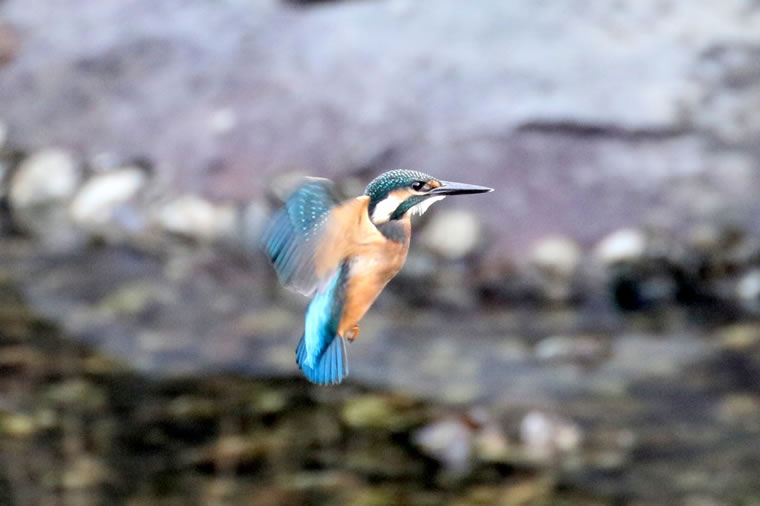 カワセミは水中の獲物を捕る直前に、空中でホバリングすることがあります。