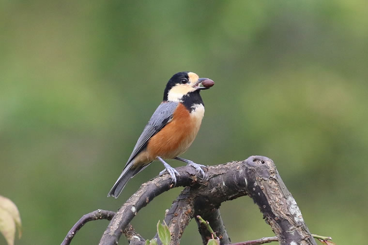 次集あたりで、その写真を載せたいと思いますが、ヤマガラはこの硬い実を両足で器用にはさんで、中の実を啄ばみます。