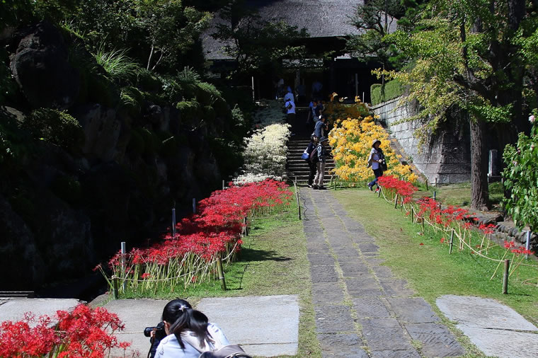 横浜市にある西方寺は、赤、白、黄色の約 1 万本の彼岸花を見ることができるので、お彼岸の時期にはお墓参りの人以外に、多くのカメラマンが訪れます。