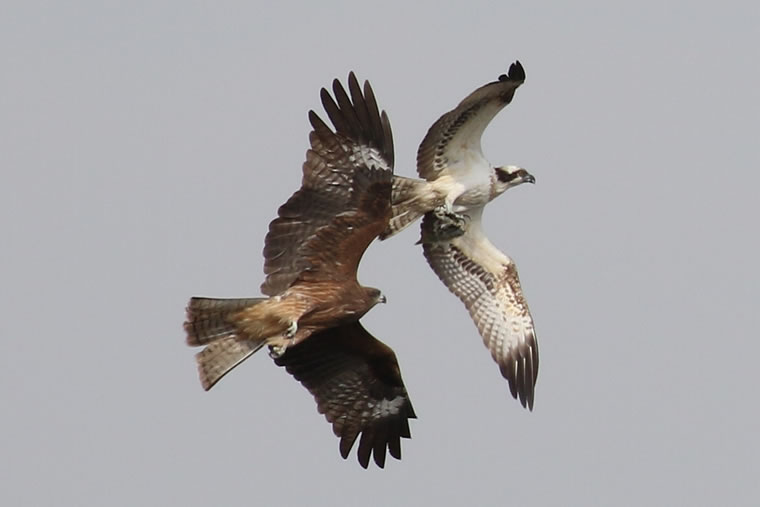 ミサゴが小さな魚を捕らえると、横取りしようとトビが現れましたが、ミサゴはこれを振り切って持ち帰ったようです。