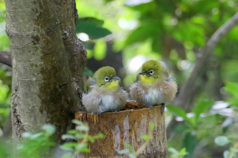 毎週末にカワセミを撮りに行く近所の公園には、お正月の松飾りの竹を切って作った水飲み場が数箇所あり、この日はメジロの幼鳥が仲良く水浴びしていました。