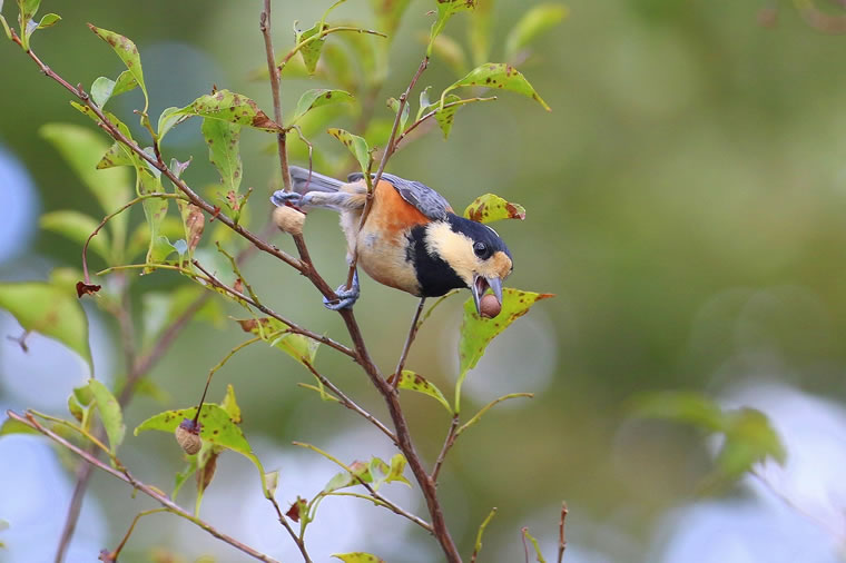 クチバシで突いて殻の中からエゴノキの実を食べたり、冬に備えて木の穴や土中に蓄えたりもします。