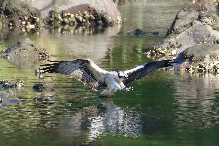 枝の上や、上空の高いところから、水中の魚を見つけて、急降下して鋭い爪で魚を鷲づかみにします。