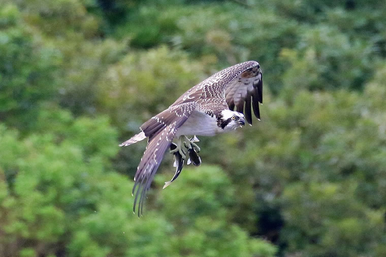 2匹の獲物を掴んだまま、汽水湖の上空を旋回し始めました。