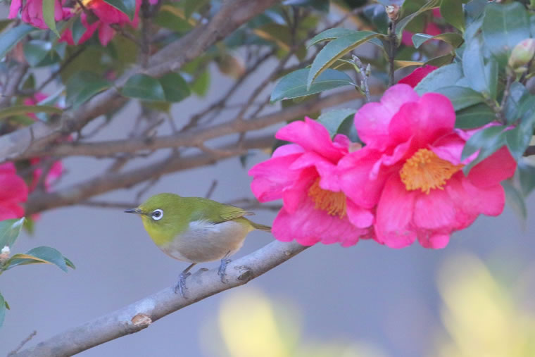 |WILD BIRDS PHOTO GALLERY(野鳥ギャラリー)|VOL.51 山茶花とメジロ|