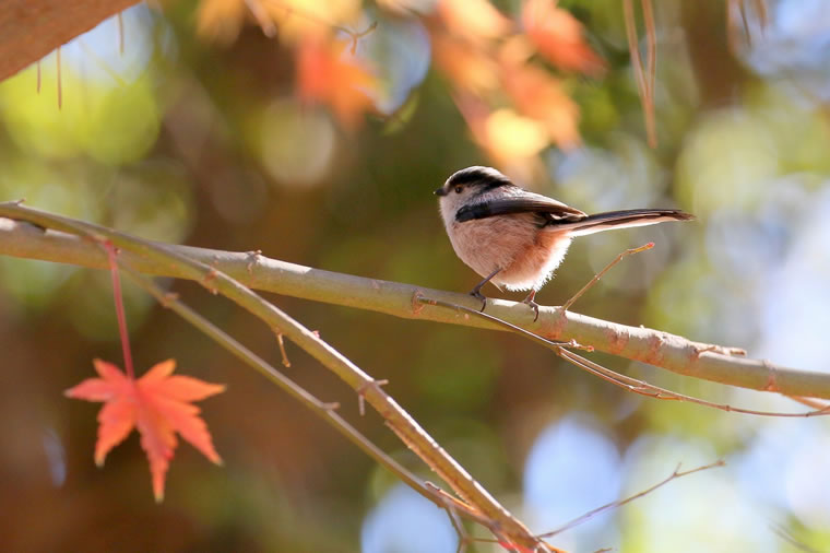 すばしこくて、ほとんど一ヶ所にじっとしていないエナガさんですが、ほんの一瞬、紅葉をバックに止まってくれました。