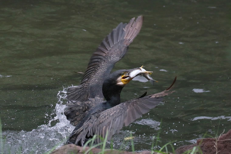 鵜が獲物を捕らえるのは何度か見たことがありますが、一瞬で飲み込んでしまうので、中々シャッターが間に合いません。