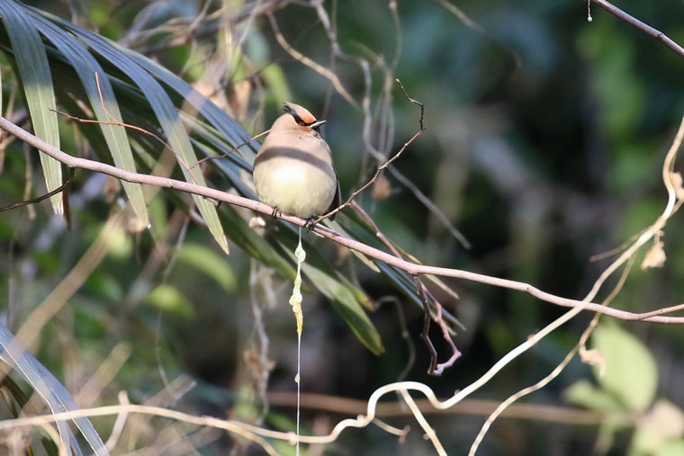 ヤドリギの実はネバネバした粘着質の果肉なので、フンをすると、こうして長く伸びてなかなか切れません。
