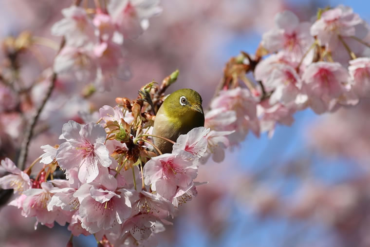 花の咲き方やその色がソメイヨシノに似ていながら、2月中旬の比較的気温の低い時期から咲き始め、花期も一ヶ月と長いのが特徴です。