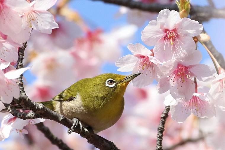 |WILD BIRDS PHOTO GALLERY(野鳥ギャラリー)|VOL.57 早咲きの桜にメジロが!|