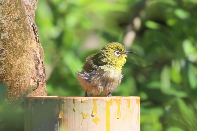 今回は、この水飲み場に現れる、メジロなどの鳥さんたちがメインです。