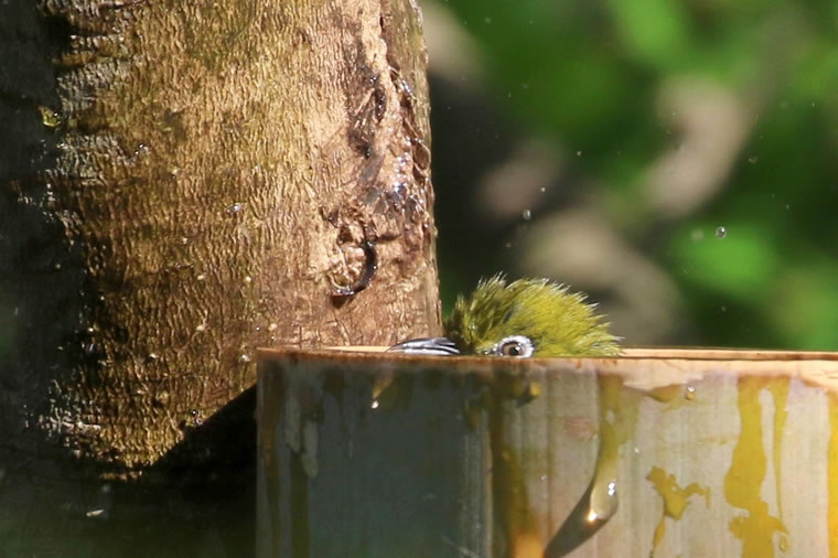 深さは15cm程度あるので、メジロは全身を水中に沈めることができます。