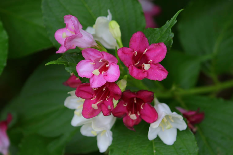 5月から6月にかけて咲くこの花は、開花中に色素が変化し、白色から順次、薄ピンク、紅色と三段階に移り変わります。