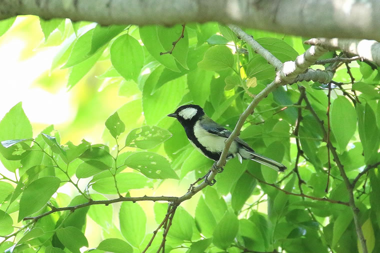 新緑の若葉が、シジュウカラを引き立ててくれます。