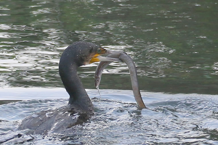 よく見たら、ウナギを咥えていたので、連写スタート。