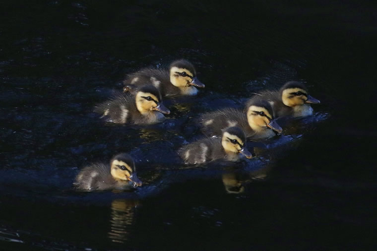 前回のVOL.68で紹介したカルガモの雛たちは6羽とも元気に泳ぎ回っています。
