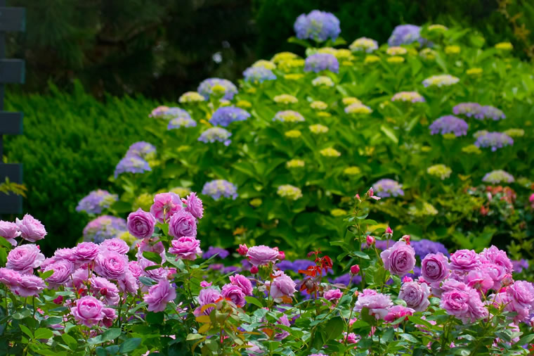 表紙もアジサイと薔薇の写真ですが、表紙はアジサイにピントを合わせ、こちらはバラにピントを合わせてみました。
