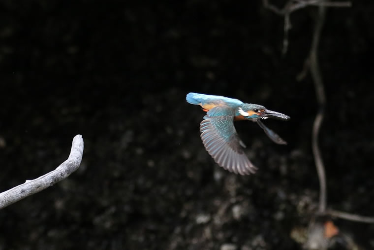 #07 獲物を咥えて飛び去るオス