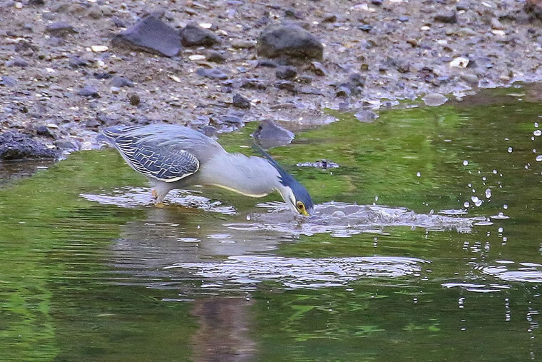獲物を見つけて、水面に顔を突っ込んだ瞬間です。