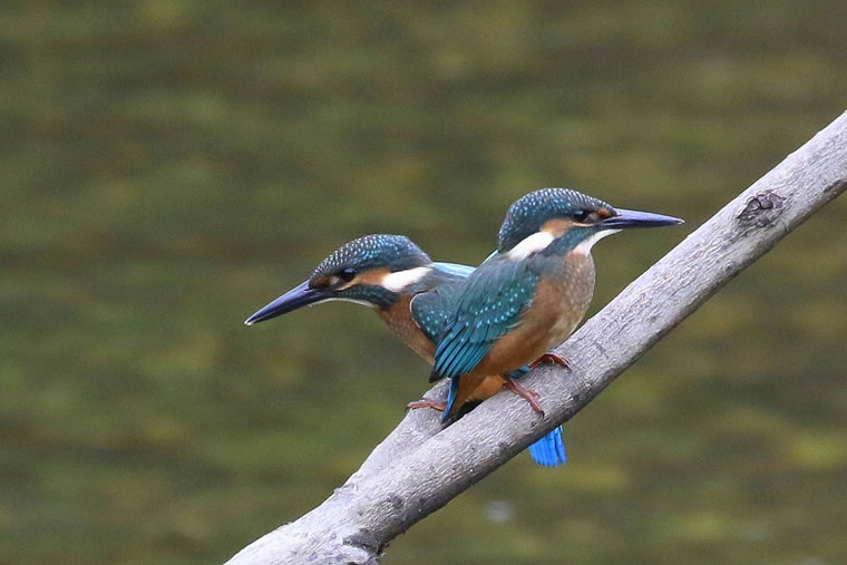 成鳥の背中は綺麗な翡翠色、お腹は鮮やかなオレンジ色ですが、巣立ち直後の幼鳥は、全体に黒っぽい色をしています。
