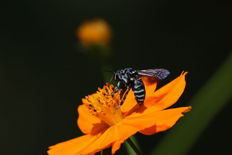 漢字になおすと「波瑠璃紋花蜂」、波状で瑠璃色(鮮やかな青)の紋様をもったハナバチの1種という意味です。