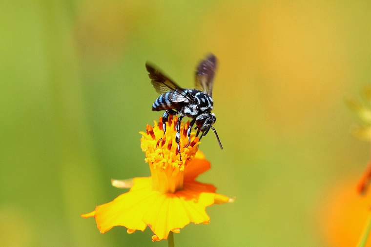 ブルービーは自分の巣を作らず、ほかの蜂の巣に卵を産み付けて子育てを任せてしまう習性をもっています。