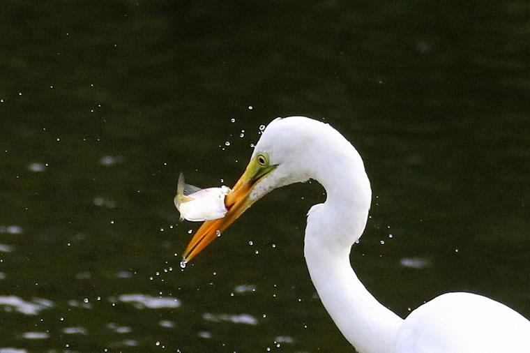 小魚を咥えているのかと思いましたが、写真を拡大してよくよく見てみると、勢いよく水中に頭を突っ込んだら、クチバシが魚に突き刺さったようです!