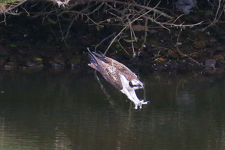 上空から獲物を見つけると急降下し着水寸前のポーズなのでフレームアウトしたりして、なかなか撮るのが難しい瞬間です。それだけに撮れた時の喜びは一入です。