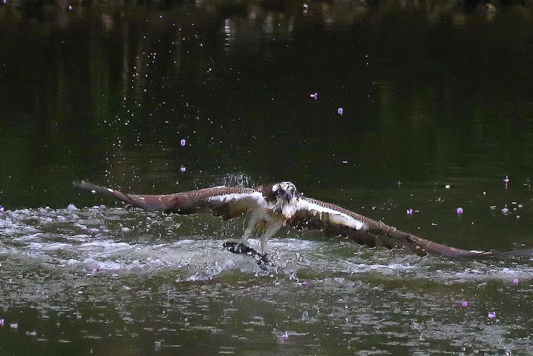 ミサゴは羽を広げると180cm程になり、水面すれすれに魚を掴んで飛んでいる様は迫力十分です。