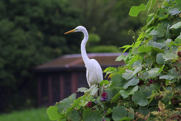 葛(クズ)の上に止まっているダイサギは、夏場にも見れましたが、同じ鳥でも違う風情を感じます。