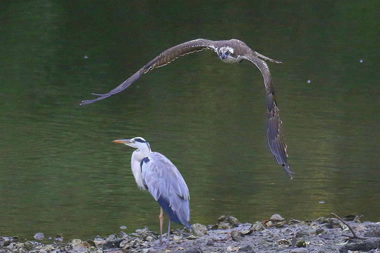 アオサギは、ミサゴが近づいてきても、ビクともしません!