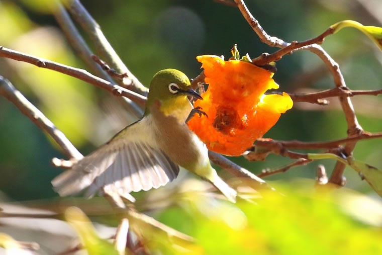 今回は、2020年ベストショツトの第三弾、“秋”の写真です。 食べごろに熟した柿に、次から次にメジロが集まってきていました。