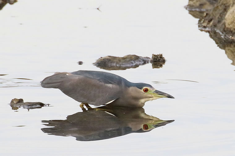 獲物を狙って屈めた姿が、水面に綺麗に反射していました。
