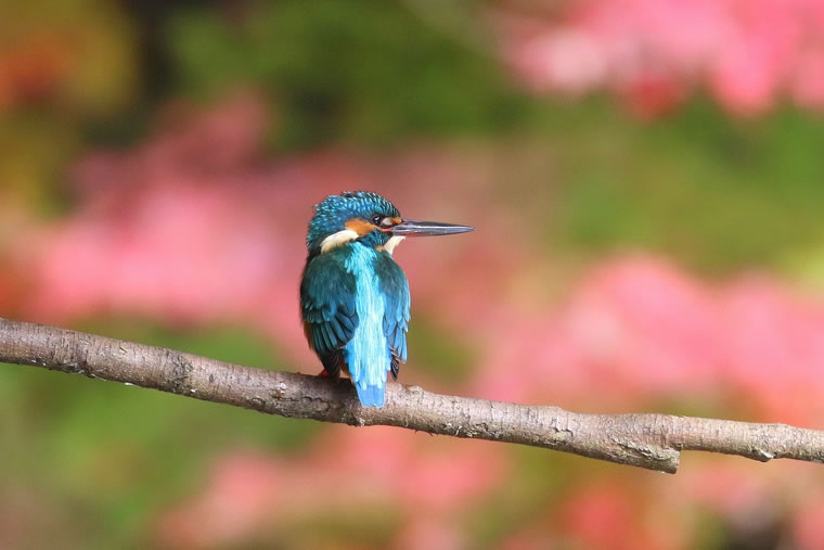 赤く色づいた紅葉を背景に、いいところにカワセミさんが止まってくれました。