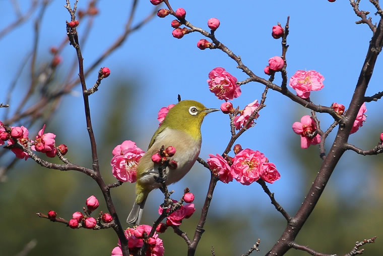 |WILD BIRDS PHOTO GALLERY(野鳥ギャラリー)|VOL.100 紅梅・白梅とメジロ|