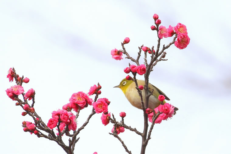 |WILD BIRDS PHOTO GALLERY(野鳥ギャラリー)|VOL.100 紅梅・白梅とメジロ|