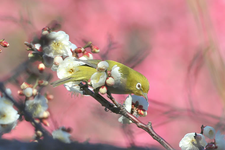 |WILD BIRDS PHOTO GALLERY(野鳥ギャラリー)|VOL.100 紅梅・白梅とメジロ|
