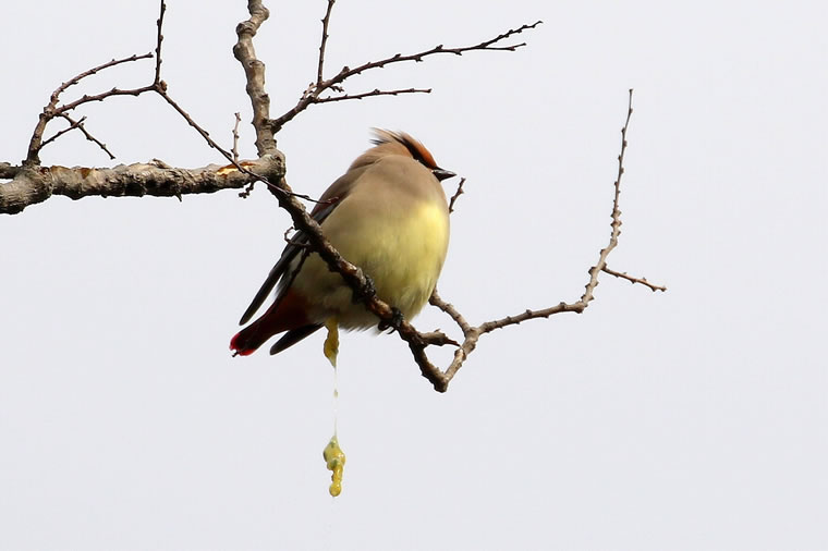 黄色い実を、粘着性があり糸を引くような糞として排泄します。