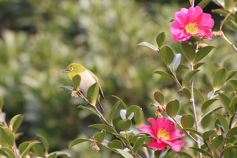 #05 山茶花とメジロ