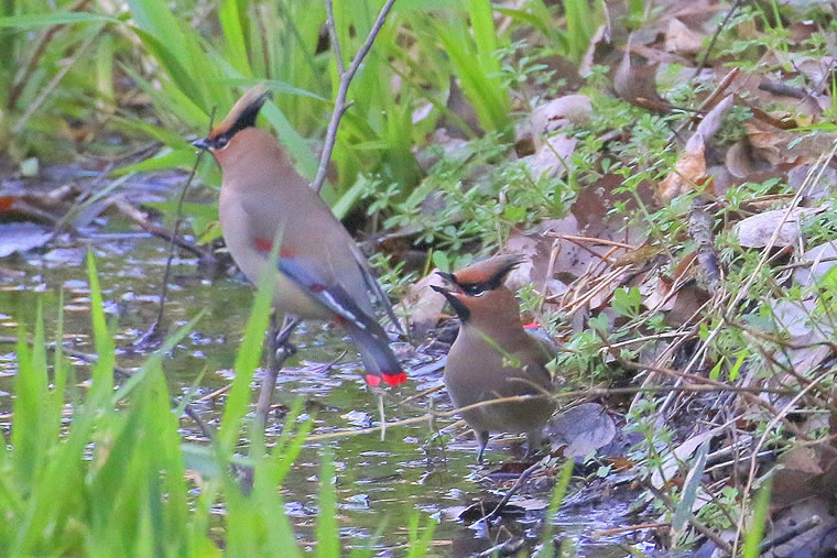 緑があると、ヒレンジャクの尾の緋色が映えます!