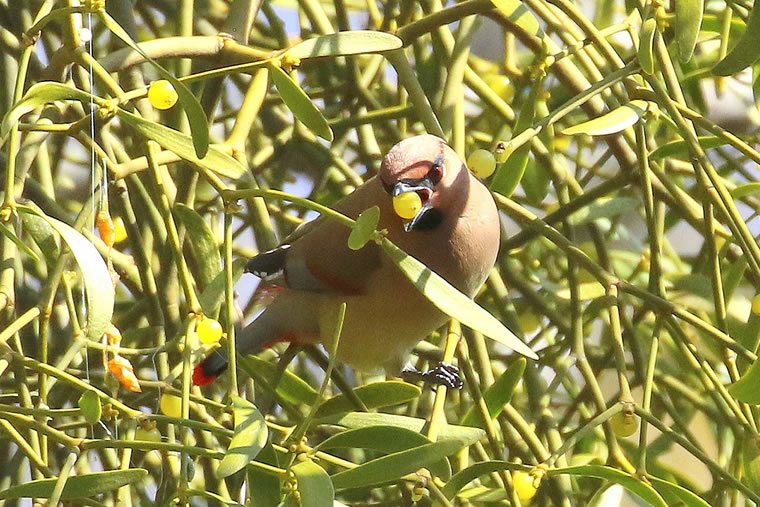 住宅に囲まれた、この横浜市内の公園では、1月末にはヤドリギの実がたくさん実るので、今年もレンジャクがやってきました。